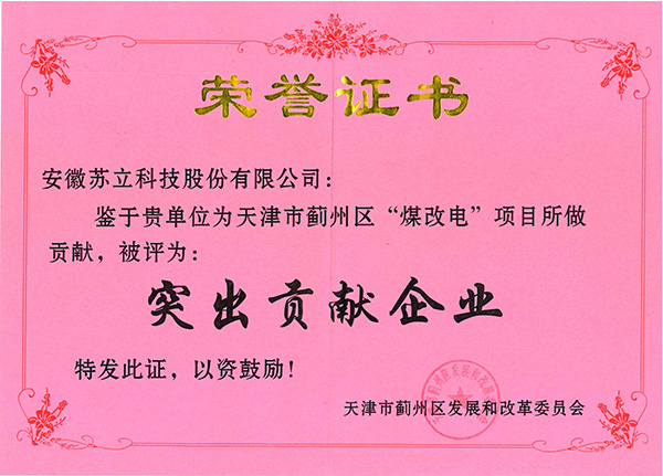 天津市薊州區(qū)“煤改電”項(xiàng)目突出貢獻(xiàn)企業(yè)